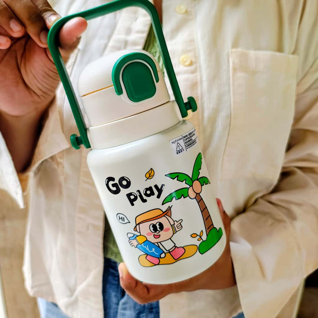 Add a pop of fun to hydration time with the Lookoy 400ml Insulated Stainless Steel Sipper Bottle!
